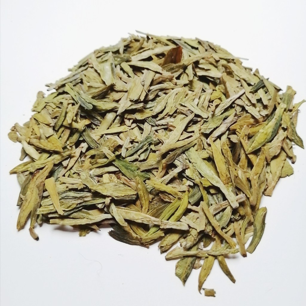 “This Shi Feng Lung Jing is grown at an elevation of 500 meters above sea level in Zhejiang, China. Grown from the #43 longjing cultivar, his hand-plucked variety has a standard of one bud and one or two, three cm long leaves. which were harvested in early April 2020. The firing time and temperature is determined by the tea master and depends solely on the tenderness of the leaves at that time and is repeated one additional time. Compared with other Lung Jings, this one has a flatter, lighter appearance.”
