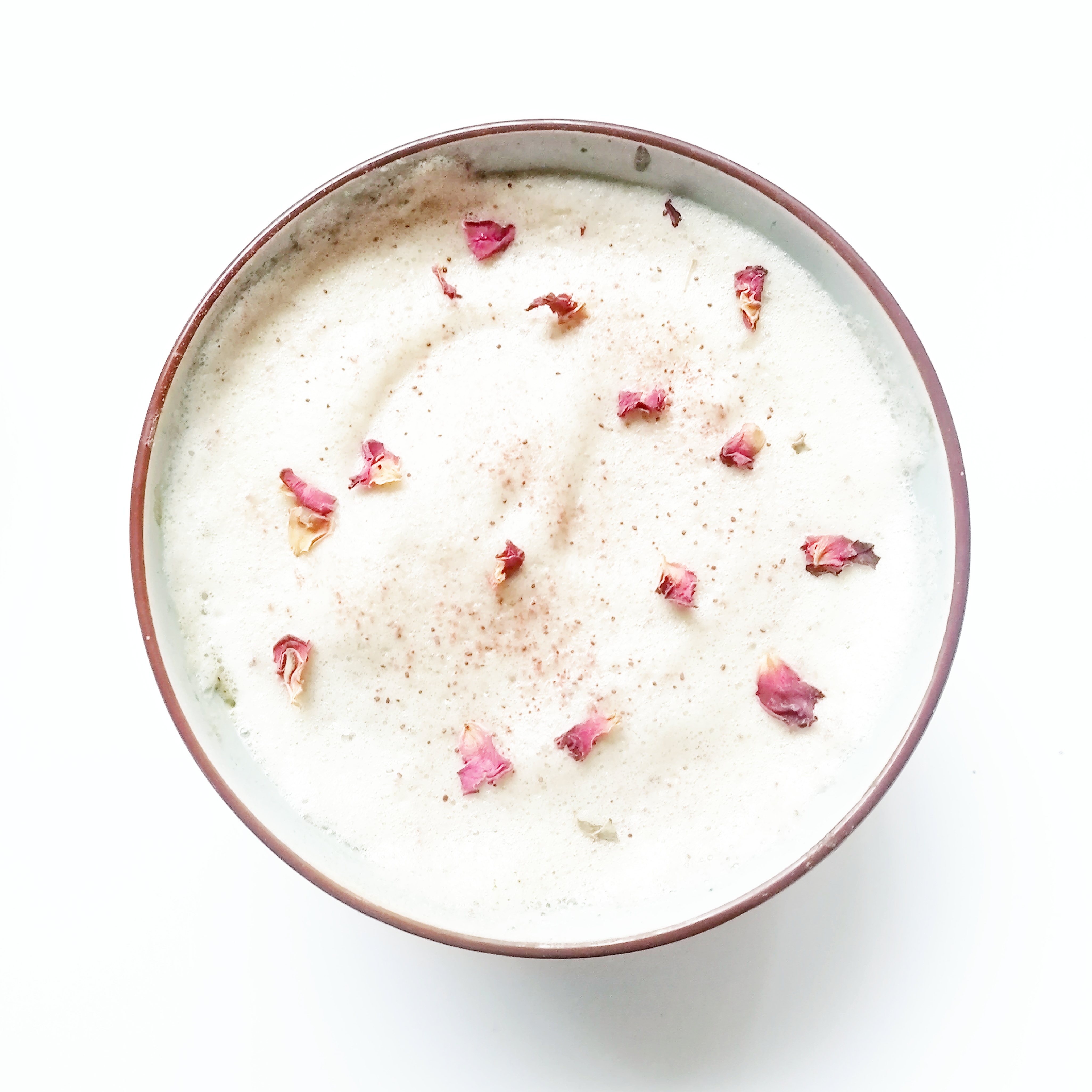 Both parts of this recipe are so simple to make but both result in absolutely delicious bowls that are such a treat to drink. Once you find the right balance between the matcha and the rose powder you really can not go wrong. The matcha’s robust vegetal notes, slight astringency, mellow umami and subtle creaminess pair perfectly with the floral slight sweet rose. Once you prepare it you can really do so much with it because it’s so versatile, it can be added to any recipe really easily and because it’s flavour profile is elegantly simple it pairs well with a lot of other things. For example I also think this would be delicious to add into a hot chocolate so I’m definitely going to experiment with that, and I also think it would be great as an iced latte maybe with some boba added, so look out for future recipes because there is no doubt in my mind I’ll be buying more of this rose powder.