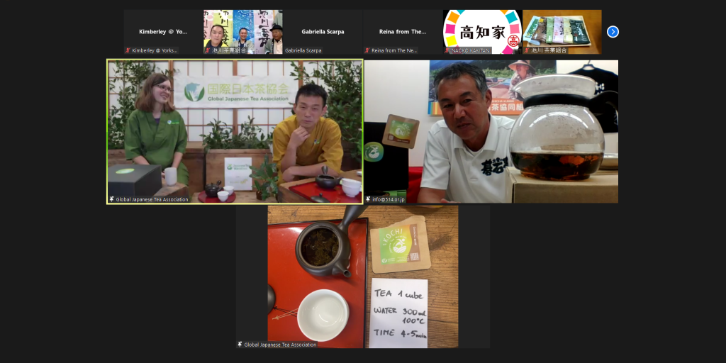 To make their sencha they harvest leaves, bring into the factory for evaluation, ranking and light steaming (the most important step). It is then soft rolled and strong rolled to create that traditional needle like shape. Their Sencha (which won an award today becoming no.1 in Kochi) was actually the tea they provided for today’s session and prepared for us traditionally. They prepared this tea the following way: 5g of leaf, 120-180ml of water at 65C, and finally steeped for 90secs. Other tea lovers in the chat described this tea in the following ways: aromas of white chocolate, peach and nuts with a toasty undertone. Most in the chat described it to have a round taste with a touch of astringency and a beautiful balance. Umami but not overpowering with a round and silky mouthfeel. Notes of melon and green peas were also noted. Certainly sounds like a delicious Sencha doesn’t it!