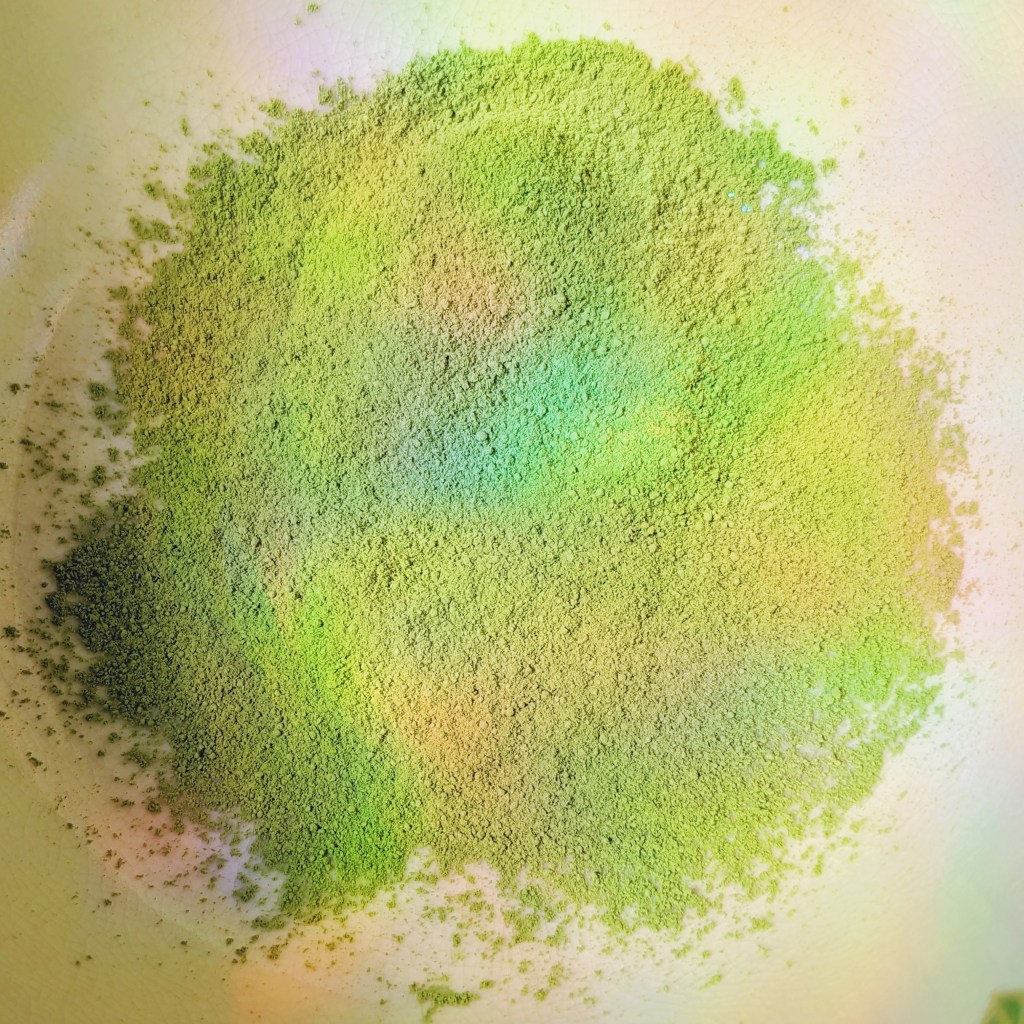 The dry powder is a mid tone creamy green, with a super light and delicately soft texture. It’s aroma is deliciously mouth-watering and filled with notes of browned high quality salted butter, roasted walnuts, yogurt coated rice cakes, creamy crackers and seaweed butter.